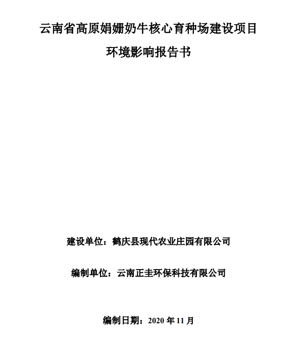 云南省高原娟珊奶牛核心育種場建設項目環境影響報告書